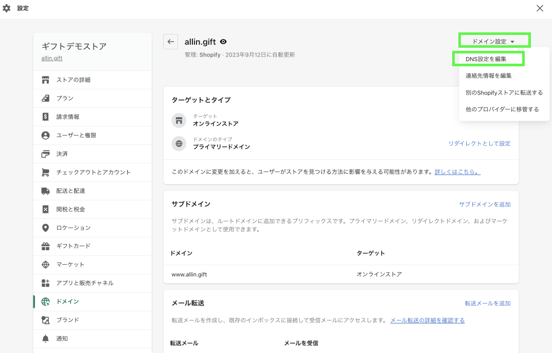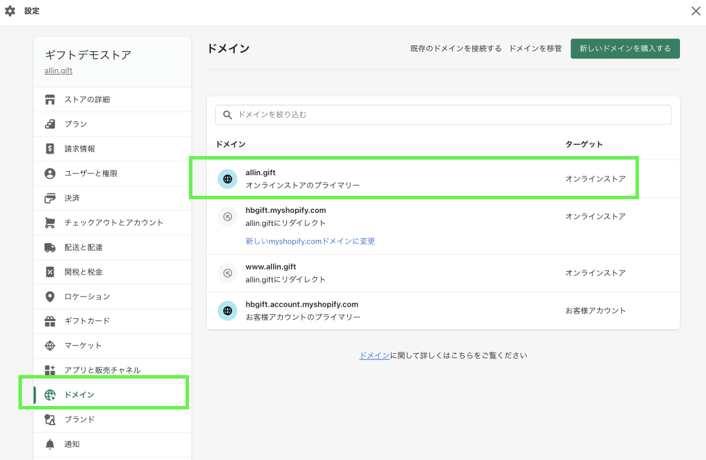 本ページでは、Shopifyで取得したドメインを利用する場合の設定手順を説明します。