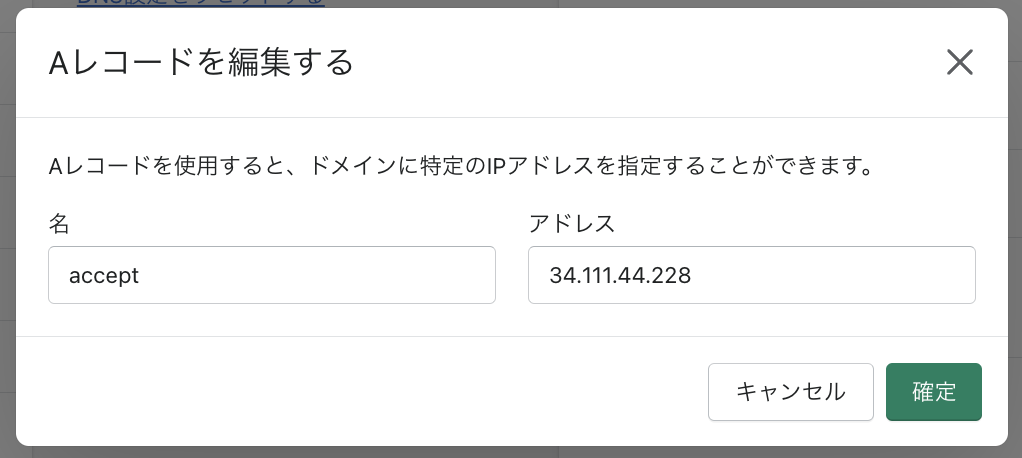 カスタムレコードを追加する > Aレコードを選択する
