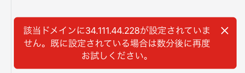 ①Record not found!と表示される場合: DNS設定ができていないと判断されているようです。反映に時間がかかっているか、DNS設定が間違っています。