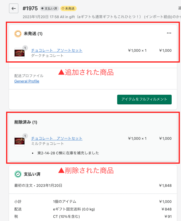 →決済時の選択商品は削除され、新しく受け取り者が選択した商品が追加されます。
