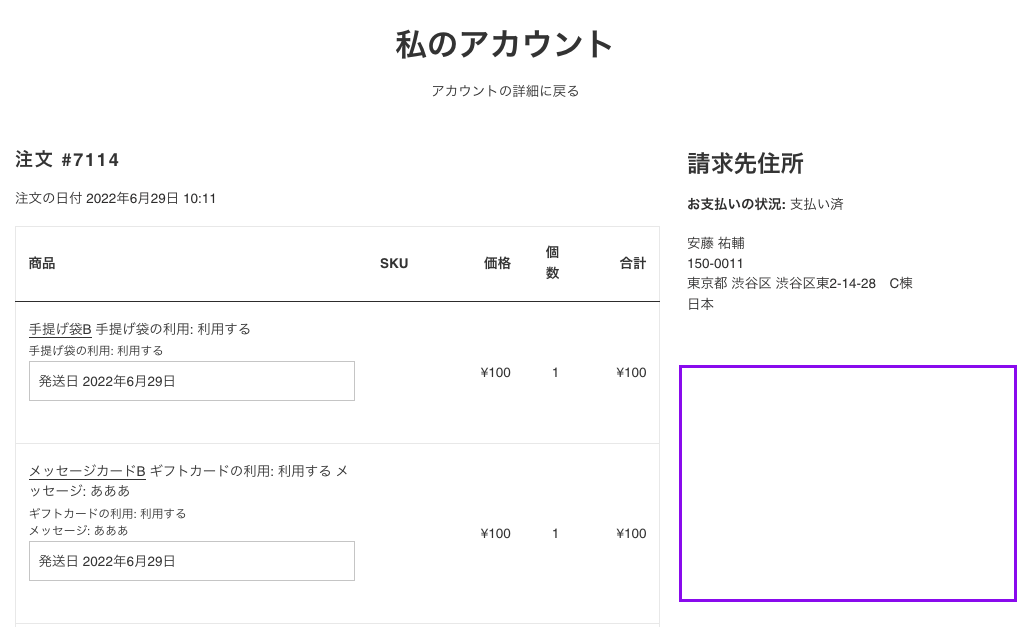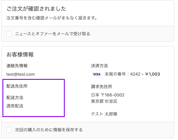 {%- endunless -%}Shopifyの仕様上、eギフト注文の配送先情報は、購入者の顧客情報にがひも付きます。