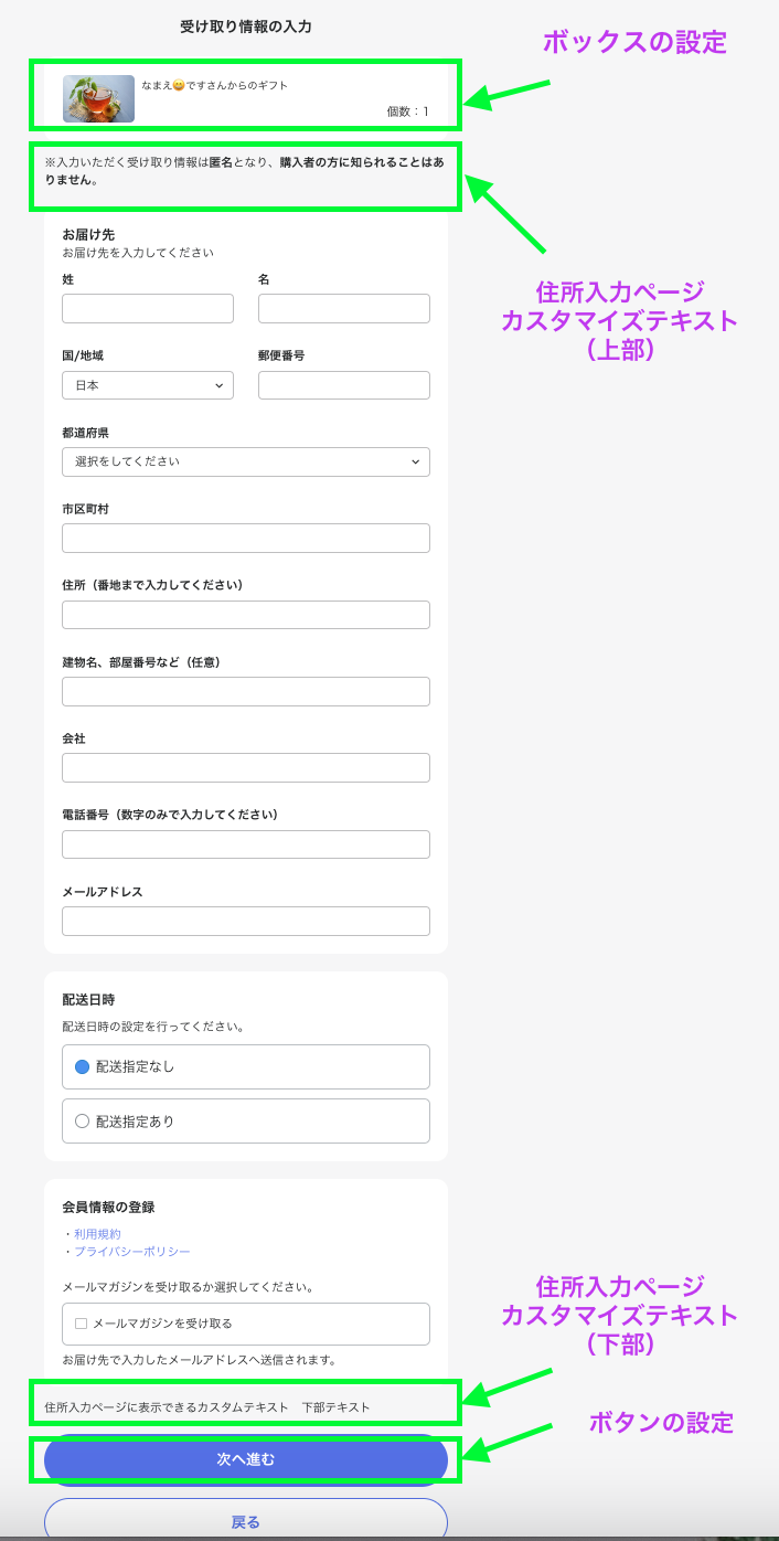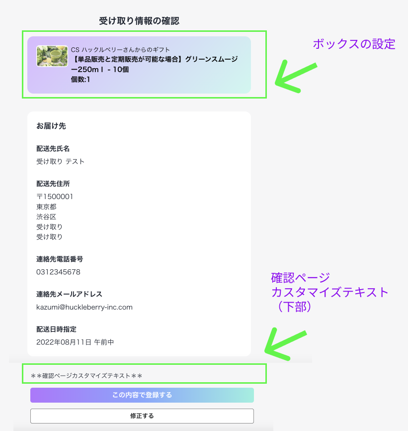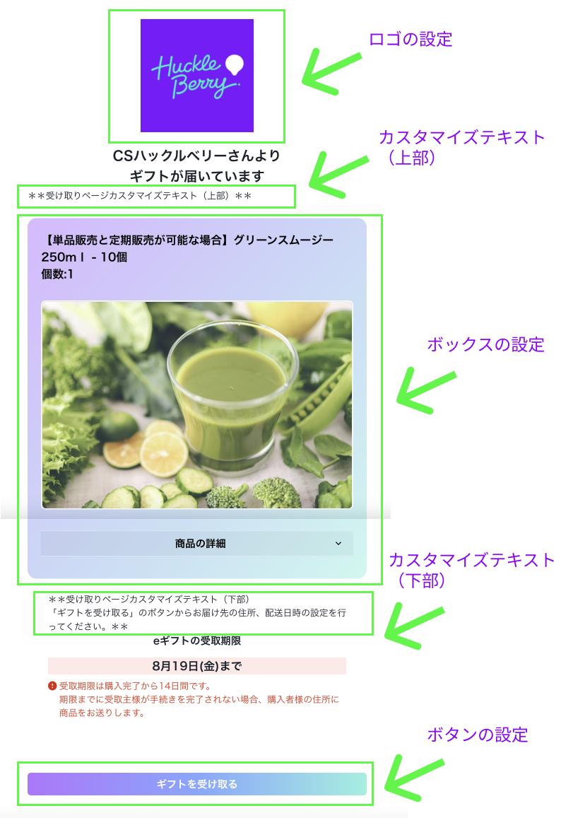 受け取りページカスタマイズ
