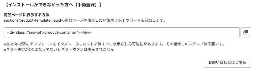 ギフトタグを設置する箇所に以下のコードを追加してください。