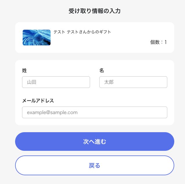 受取者が情報を入力すると、注文ステータスが