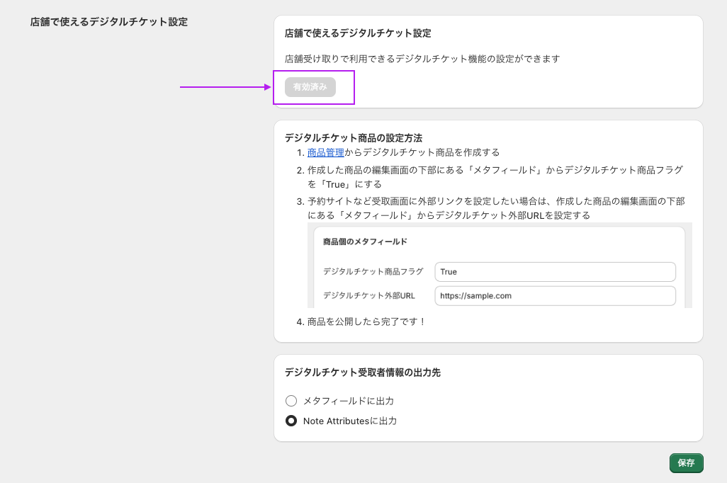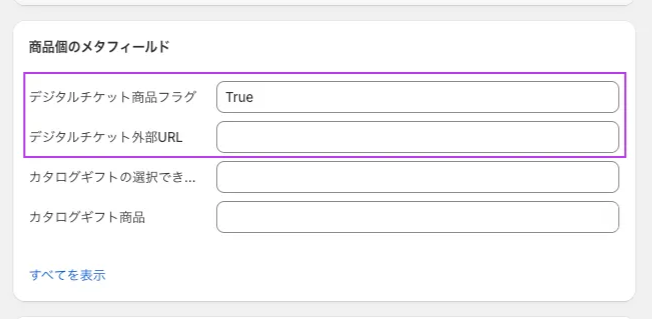 デジタルチケット用メタフィールドが作成されます。