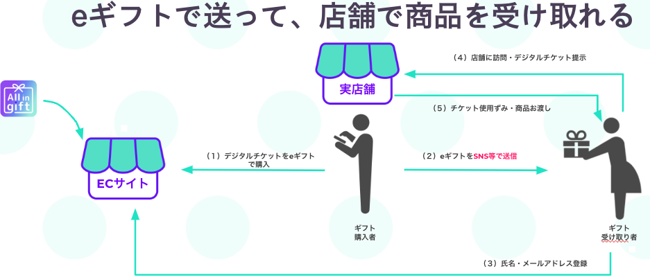 デジタルチケットは、実店舗でのギフト受け渡しに利用できる電子チケットを提供する機能です。ギフト受取者は、発行されたチケットを店舗で提示し、商品を受け取ることができます。