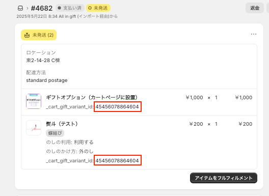 ※商品と選択したギフトオプションに同じidが付与されます。