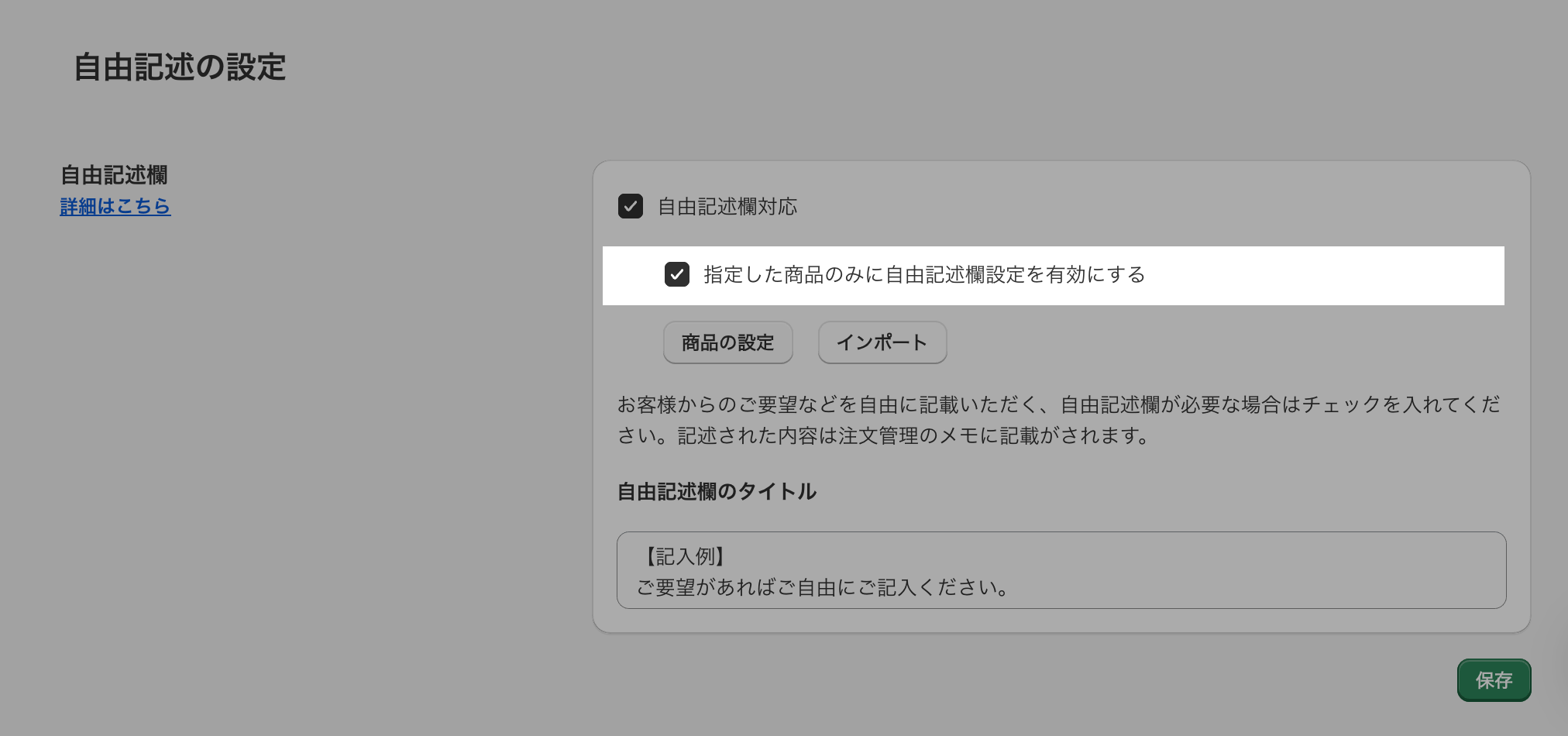 2. 自由記述欄 > 自由記述欄対応 にチェックを入れる