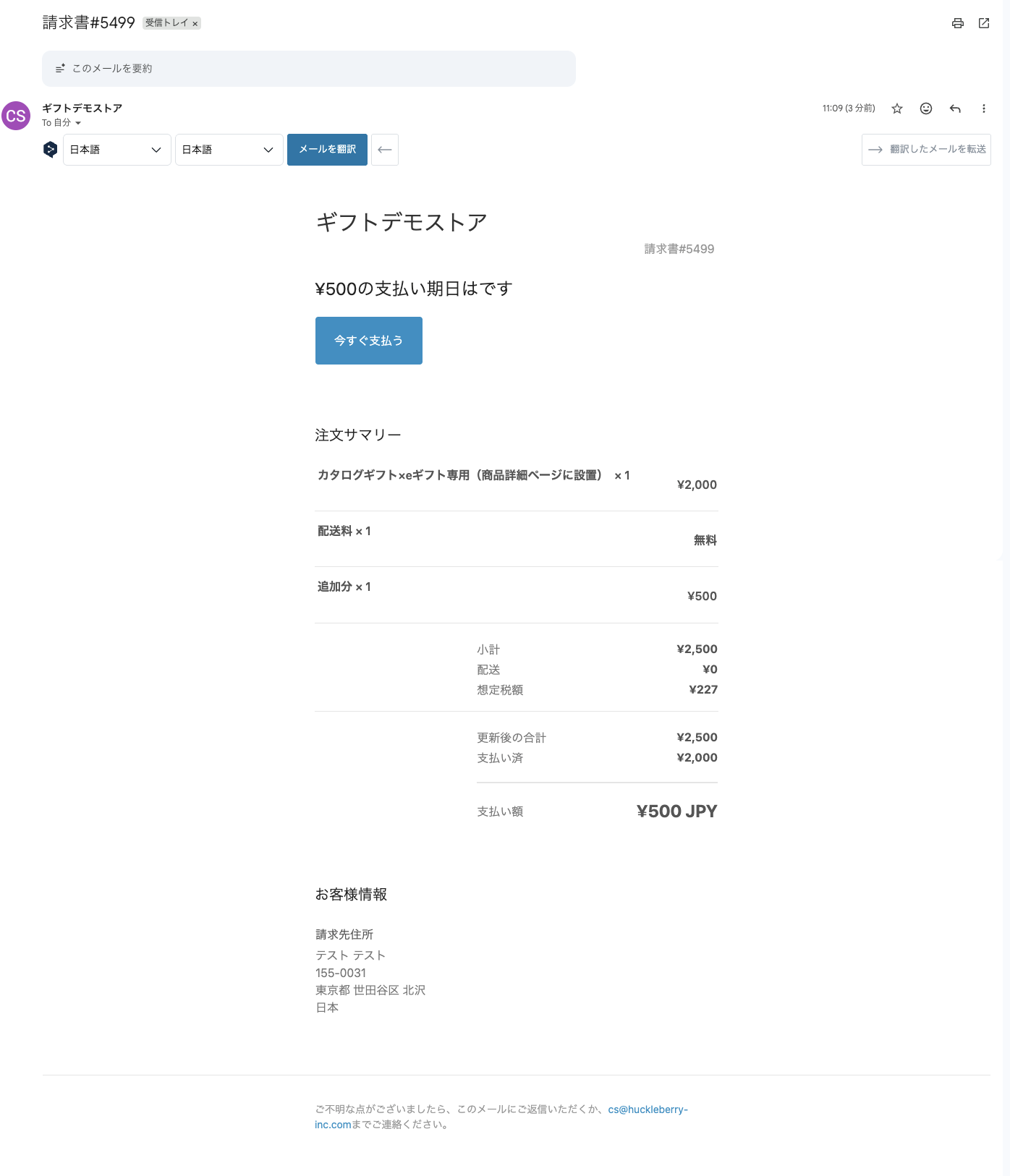 → Shopify から購入者へ請求書メールが自動送信されます。