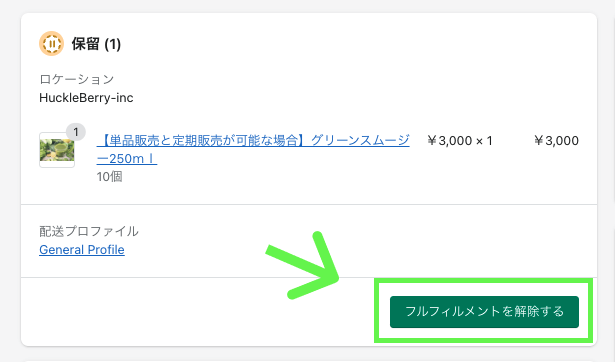 Shopify注文管理で「フルフィルメントを解除する」を選択してください。