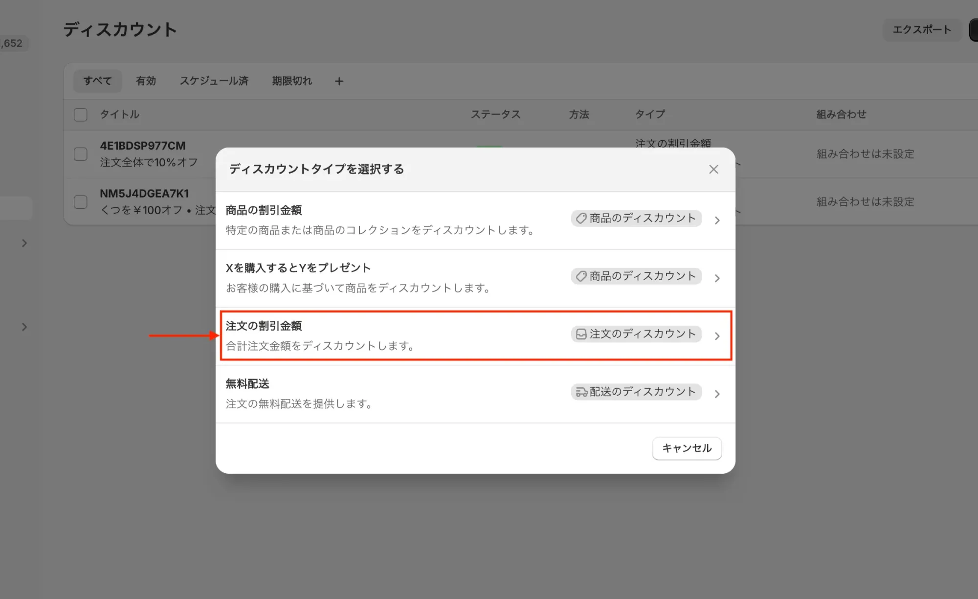 注文の割引金額 | ︎(自動ディスカウント・コード入力いずれも可) |