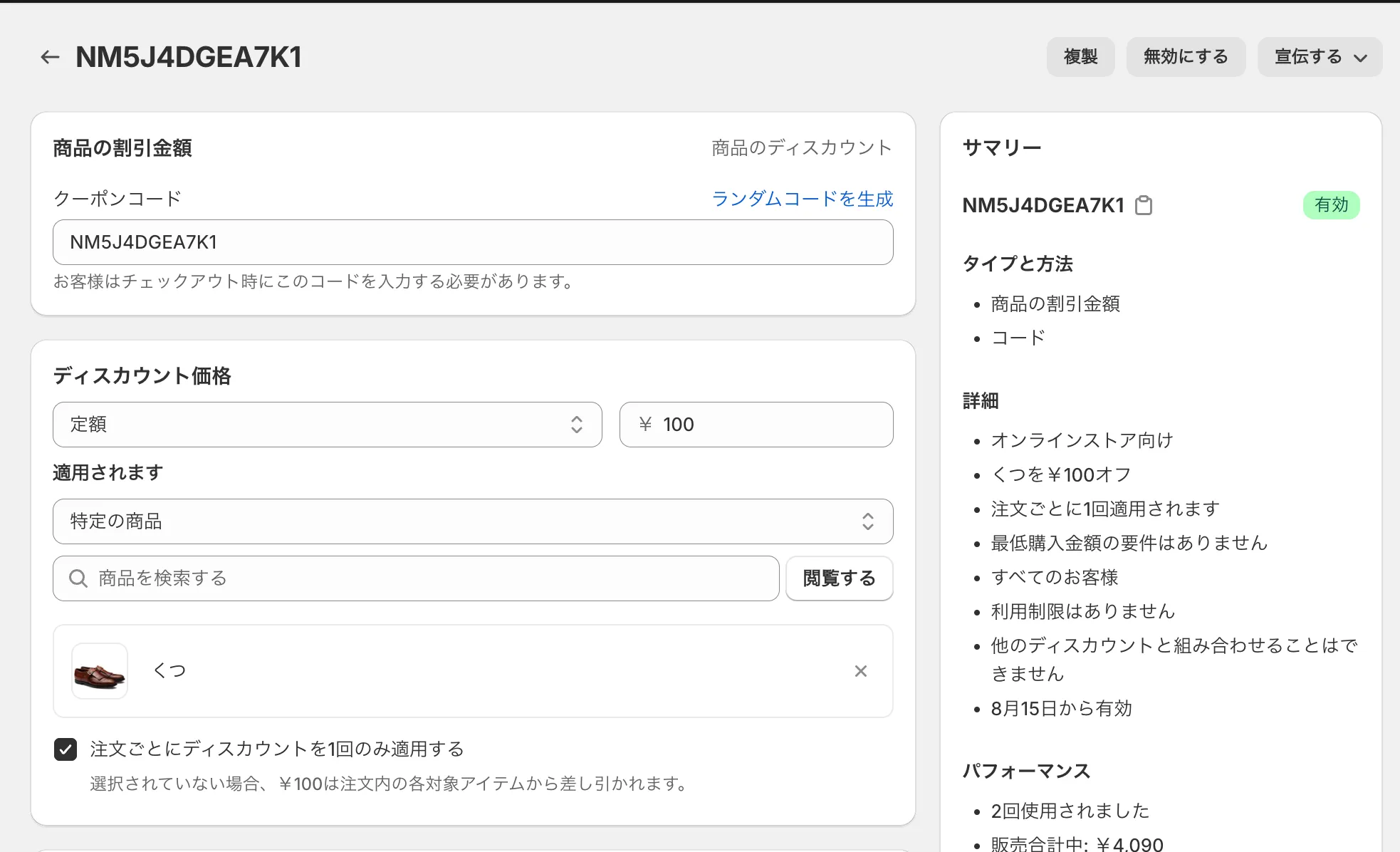 商品ごとのディスカウントは利用不可