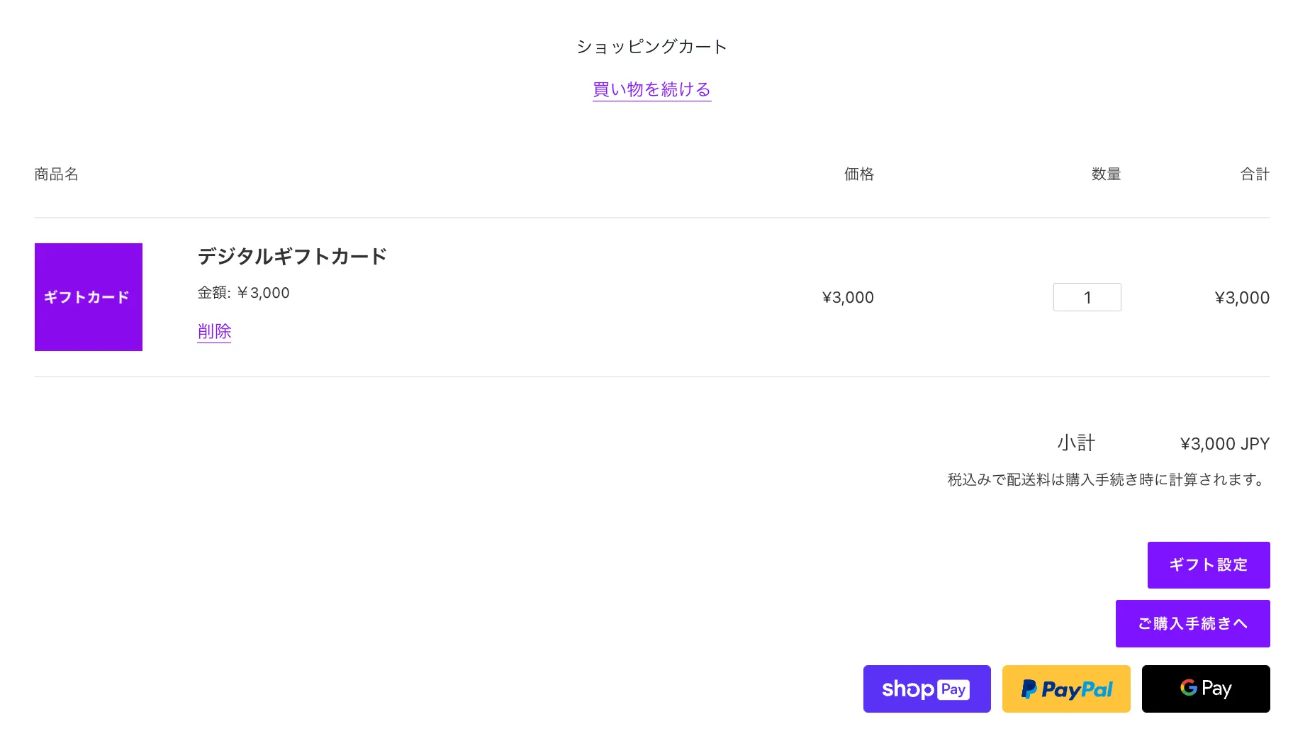 Shopifyではデジタルギフトカードを販売する機能があります。