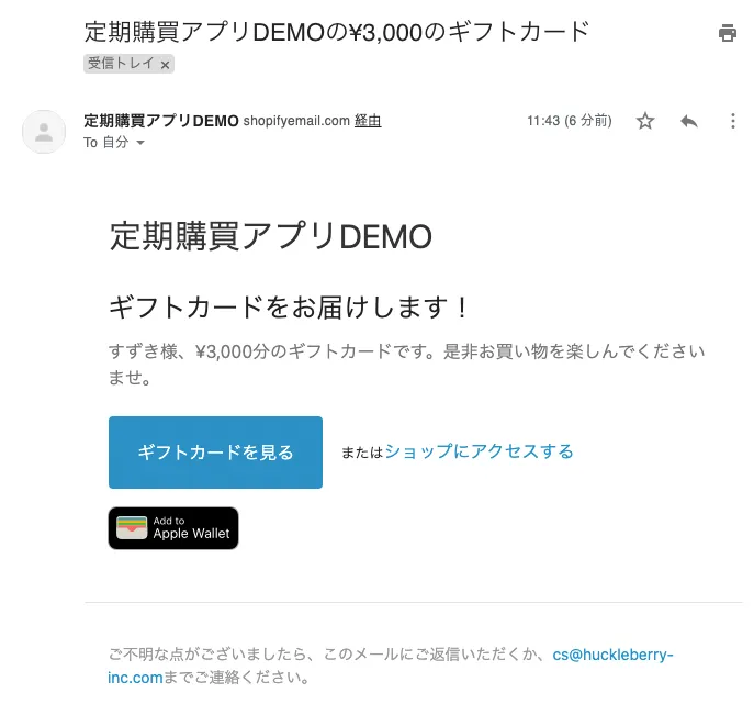 Shopifyで作成されたデジタルギフトカードはSNSでプレゼントすることができます。