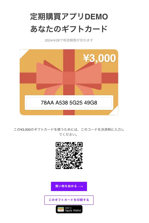 ギフトを受け取った方は、このコードを用いて、購入することができます。