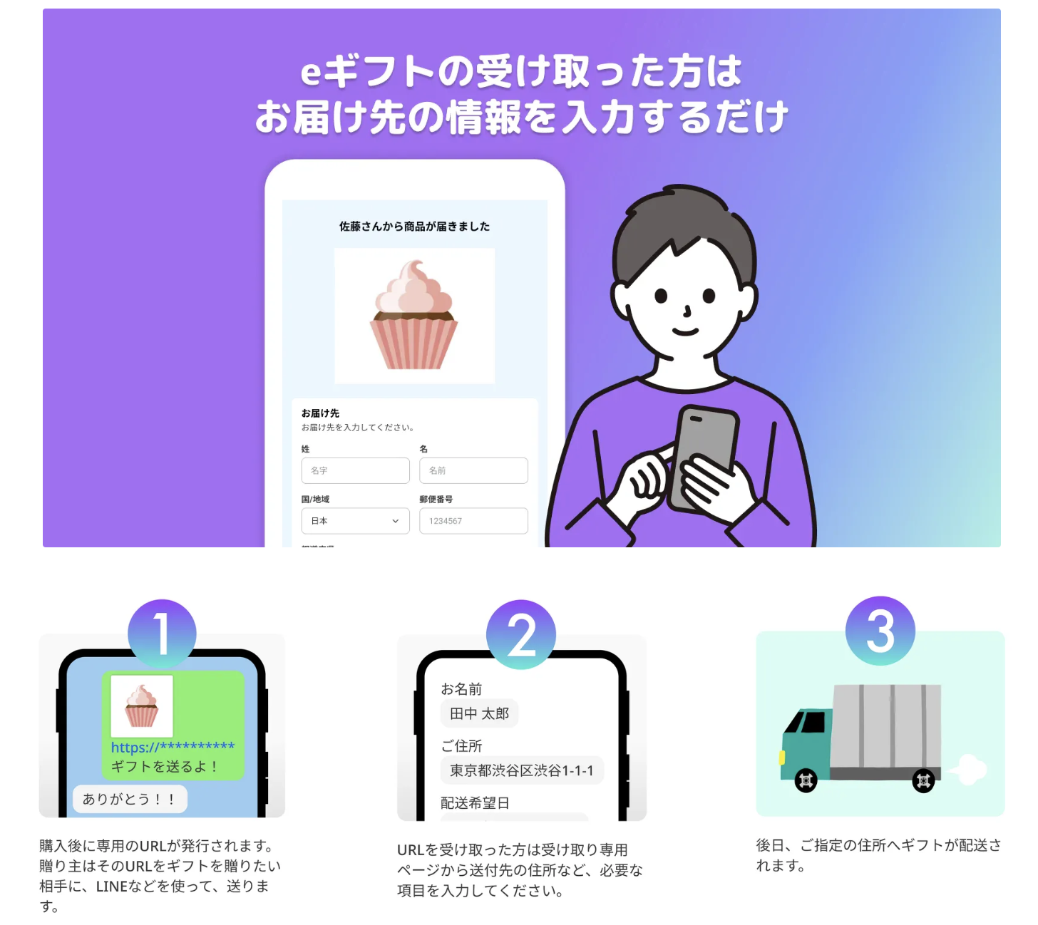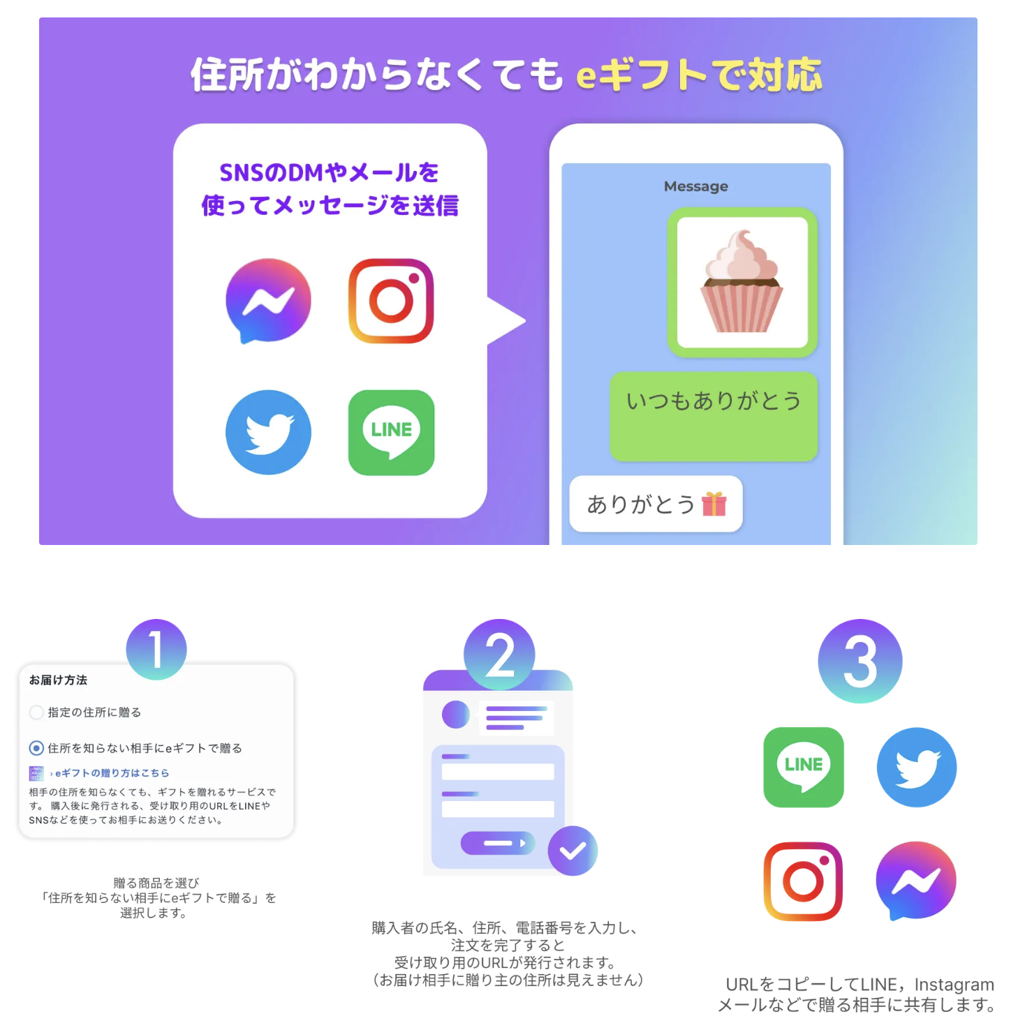 eギフトならシェアしたURLに、住所を入力してもらうことでギフトが贈れます。