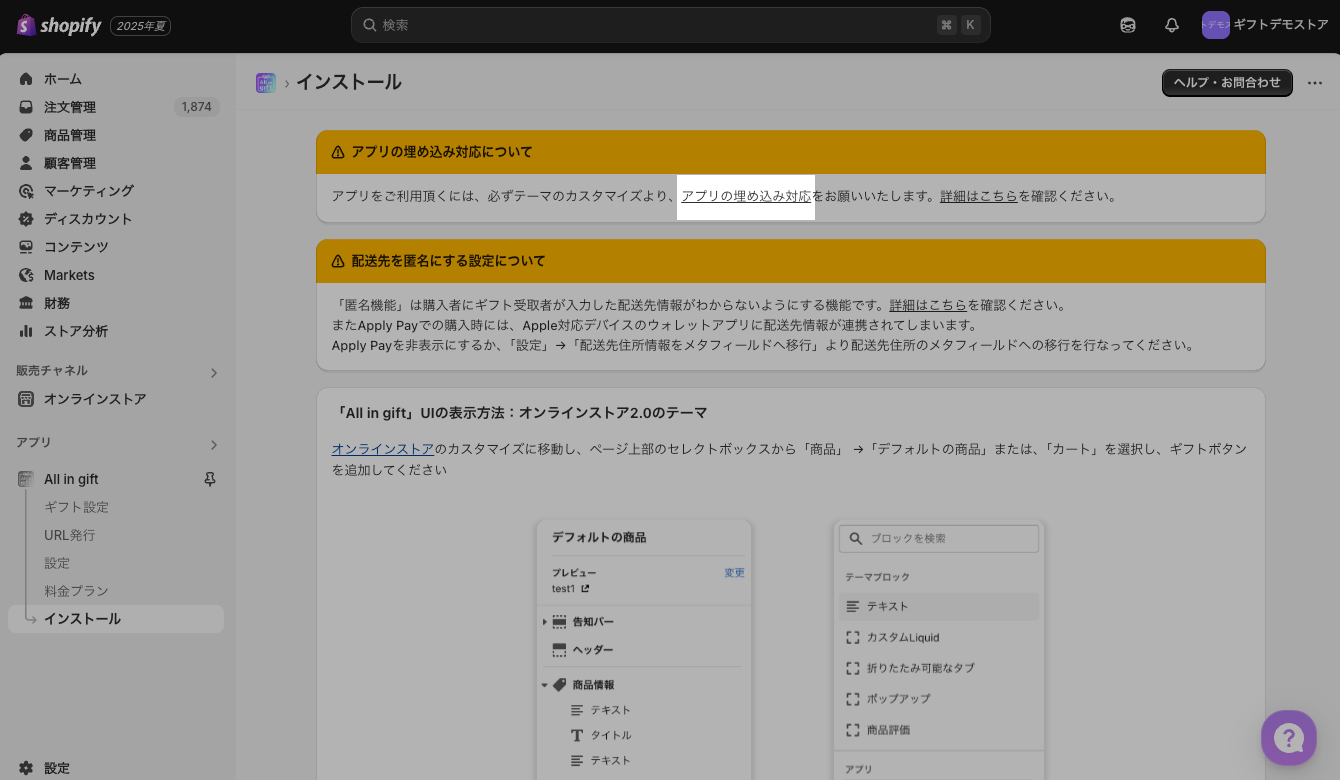 Shopify Plus店舗、Checkout Extensibilityのアップデート、新しいチェックアウト をご利用の場合は、サンキューページ(注文完了画面)や注文状況ページに eギフト受け取りモジュールを追加できます。