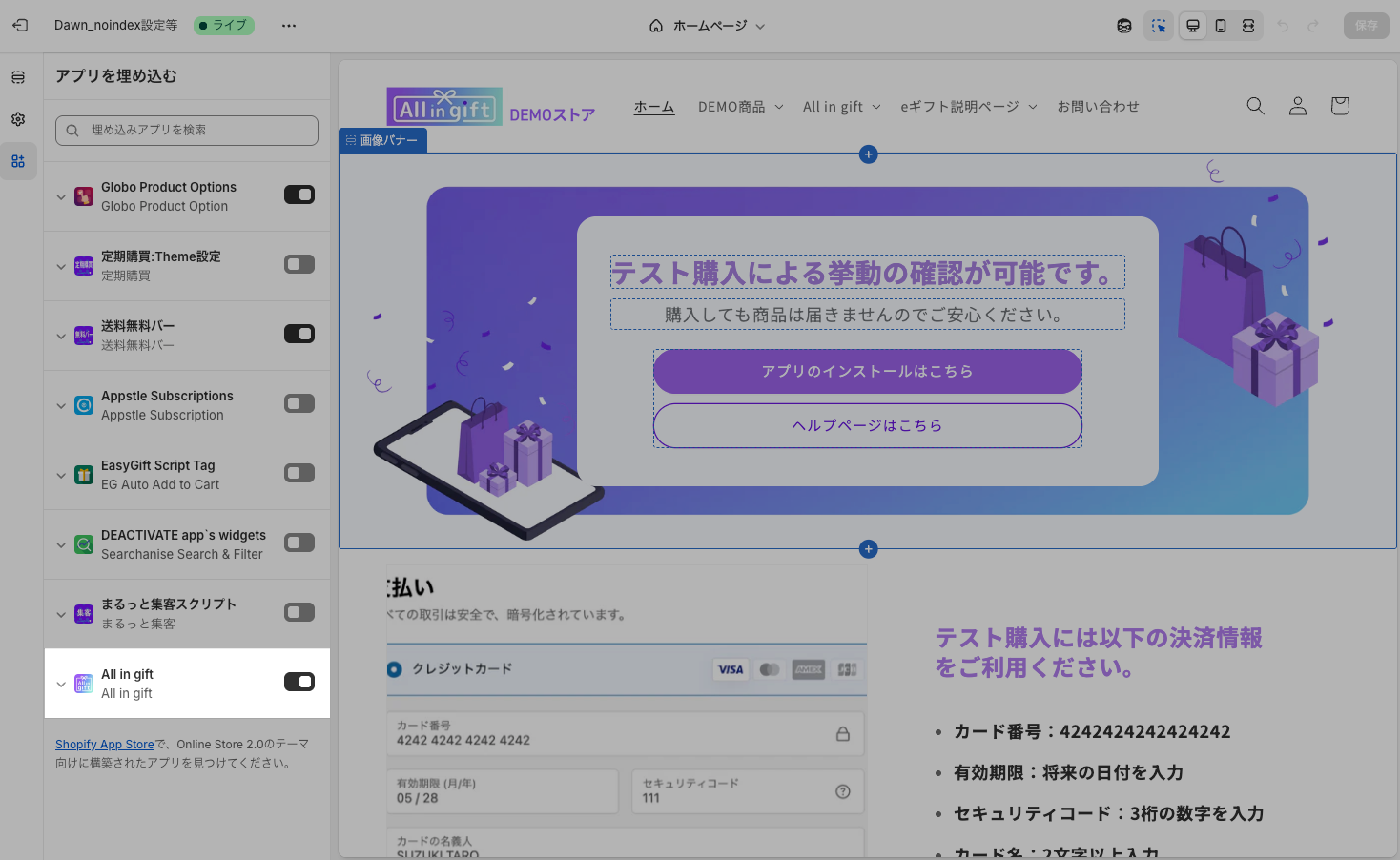 必ずテスト注文を行い、サンクスページに eギフト受け取りURL が正しく表示されることをご確認ください。