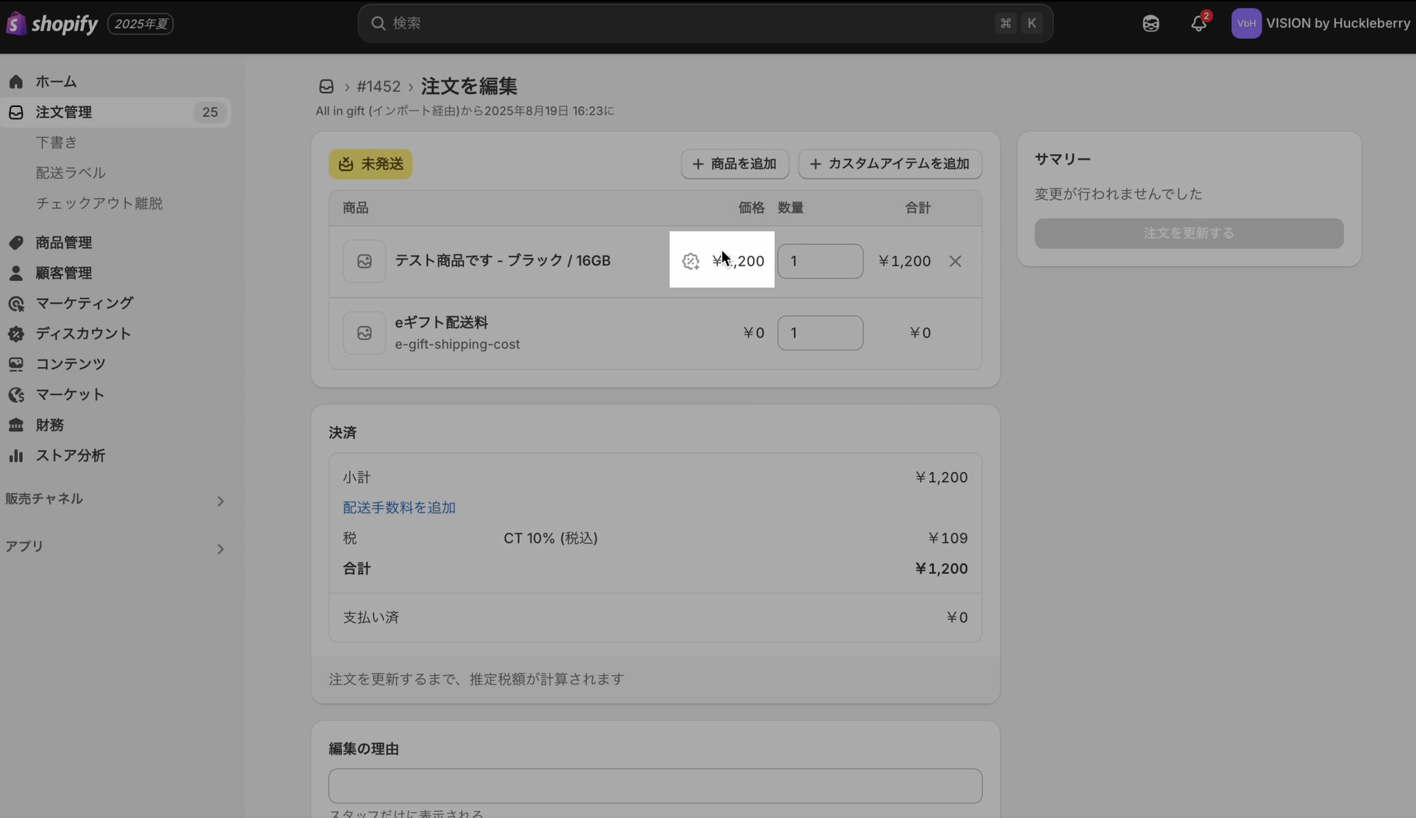 Shopify公式ガイド:注文のディスカウントを編集する:注文のアイテムにディスカウントを追加する