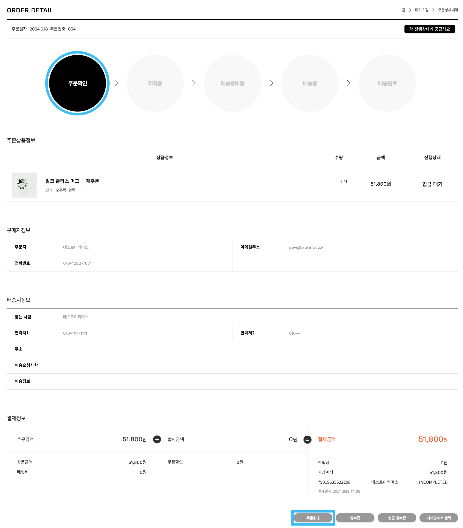 주문 취소는 [주문확인] 단계에서만 가능 ⭕️ 합니다.
