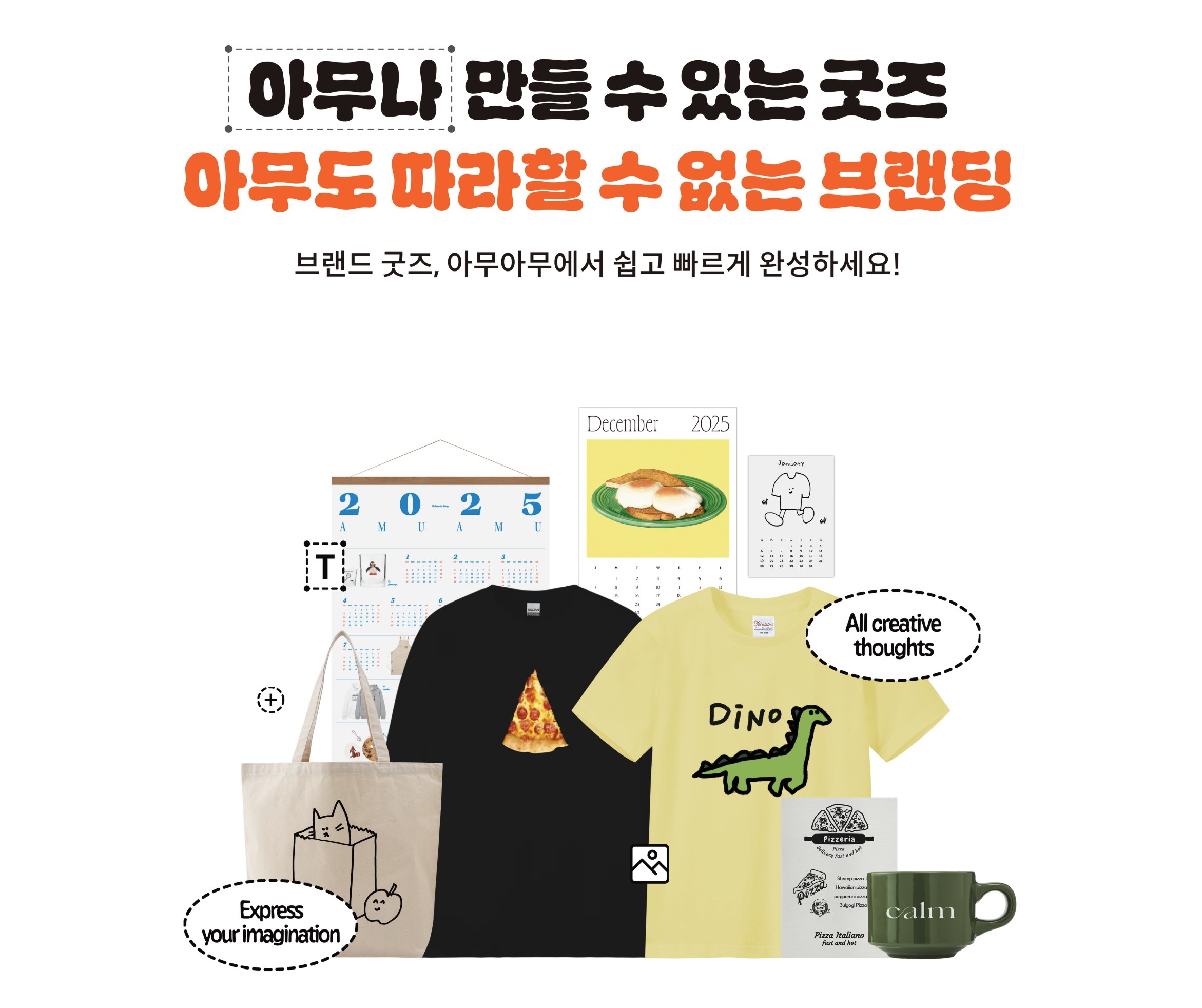 이미지, 로고, 텍스트를 자유롭게 넣어 굿즈를 완성해 보세요.
