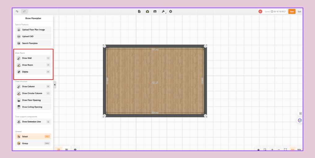 Step 1: Creating a room [Draw wall] or [Draw room]