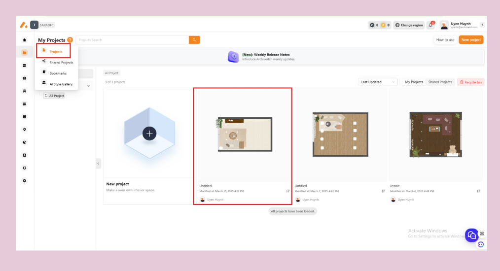 Create a project using Archisketch and upload it as a [portfolio]. *There is no limit on the number of projects.