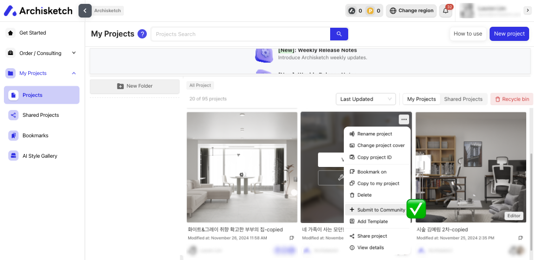 ···menu at the top-right corner of your project thumbnail and selectSubmit to Community. This will open the edit mode page where you can create your content.