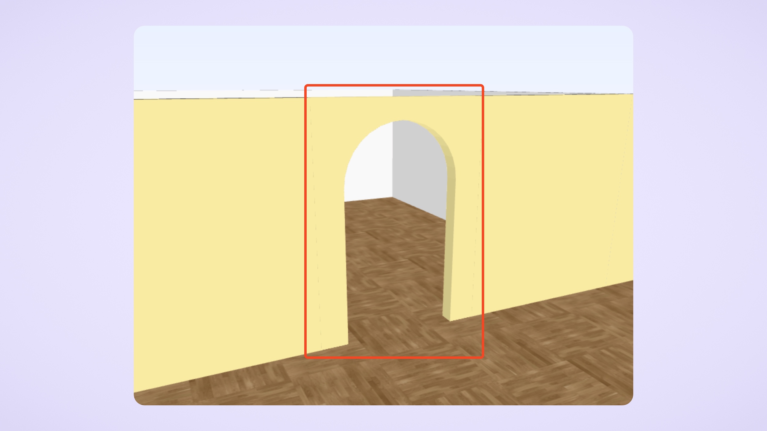 작업을 저장하고 나가면, 건축/자재 편집기에서 완성된 아치 벽을 확인할 수 있습니다.