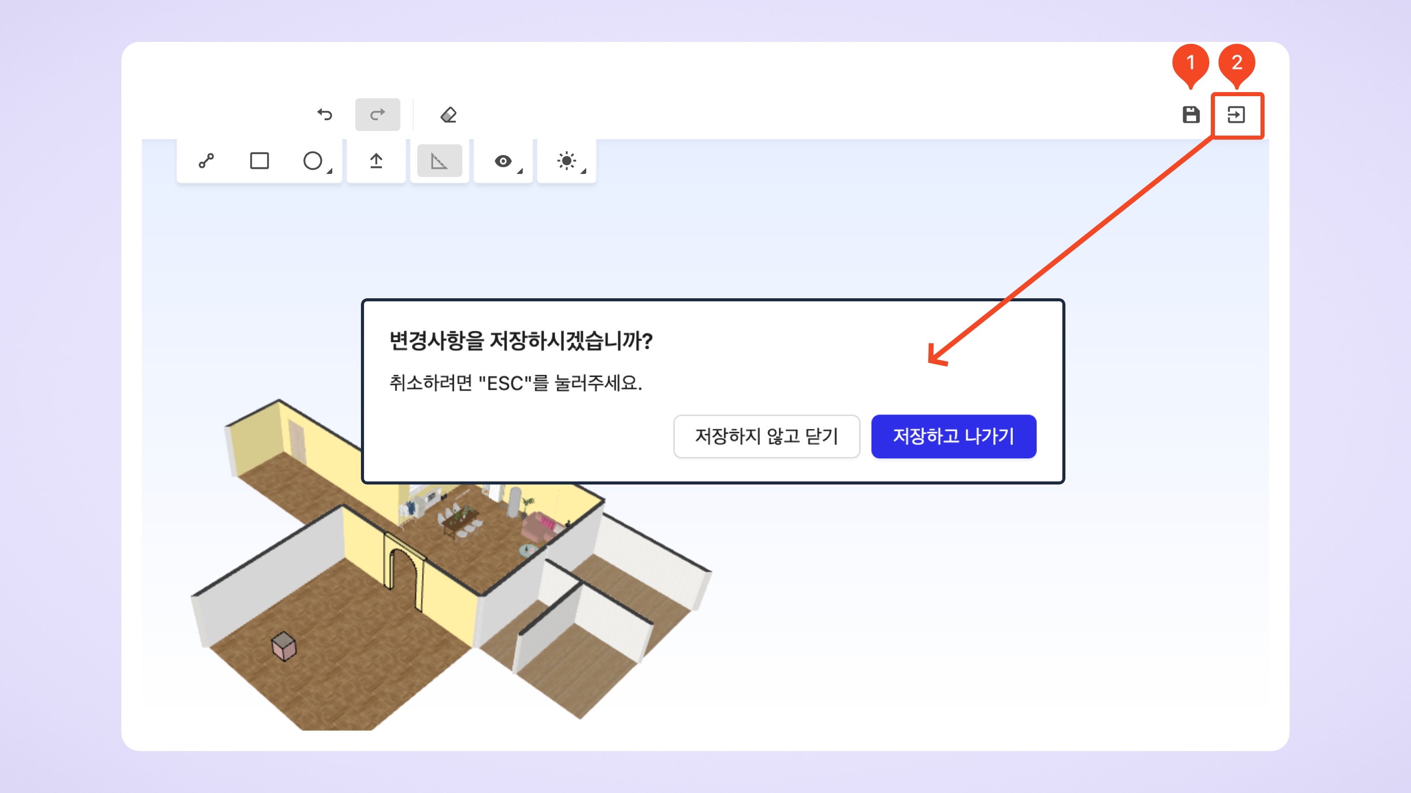 [저장하지 않고 닫기] 또는 [저장하고 나가기] 두 가지 옵션이 제공됩니다.