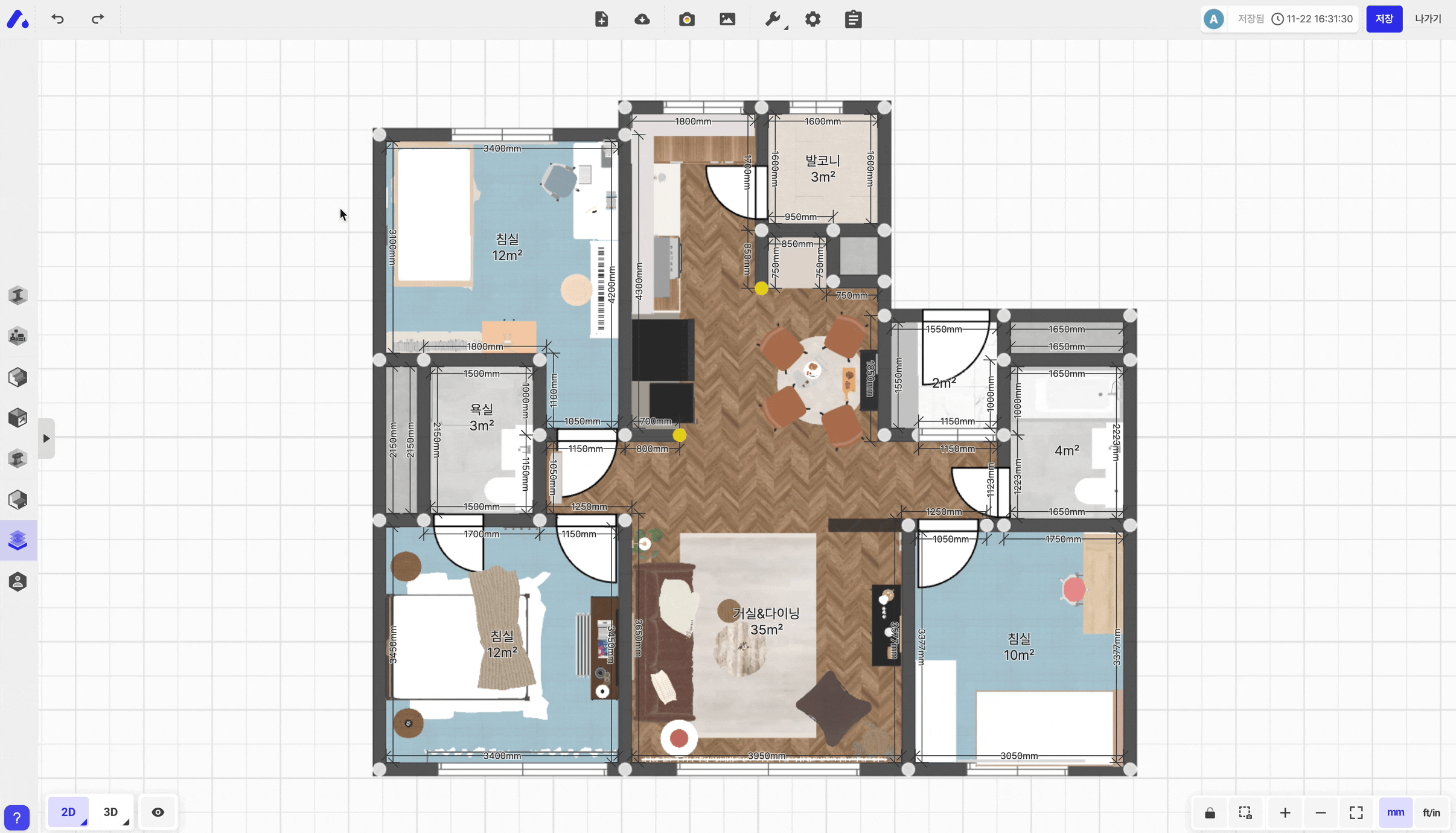 가구 배치가 고민되거나 여러 시안을 비교하고 싶을 때 유용하게 활용할 수 있습니다.