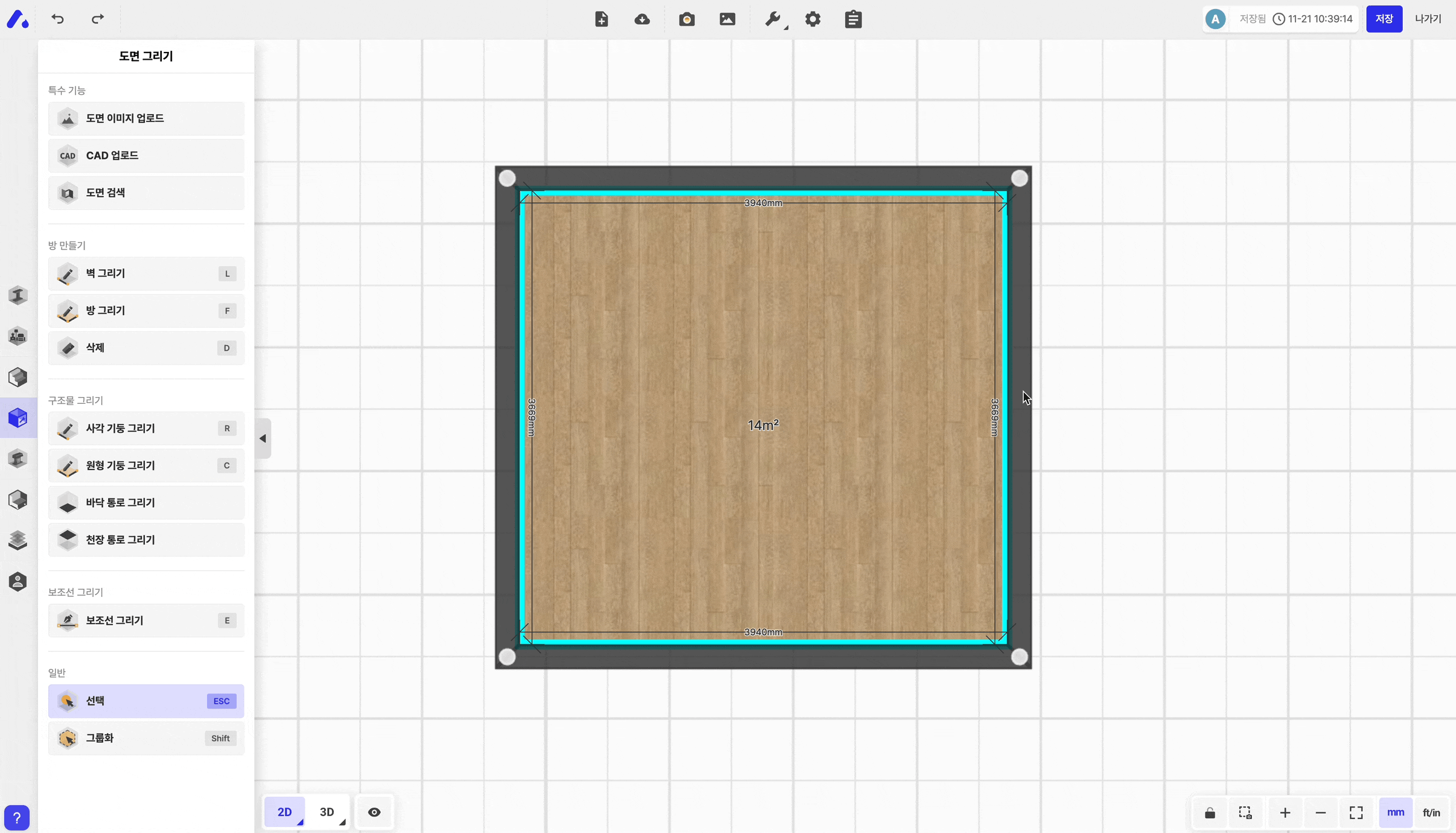 방 그리기를 활용하면 도면을 보다 쉽고 빠르게 그릴 수 있습니다. 도면을 처음부터 그려야 한다면 방 그리기 기능을 적극 활용하시는 것을 추천드려요.