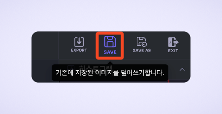 우측 상단의 [저장하기] 아이콘을 클릭해서 보정한 렌더샷을 저장할 수 있습니다.