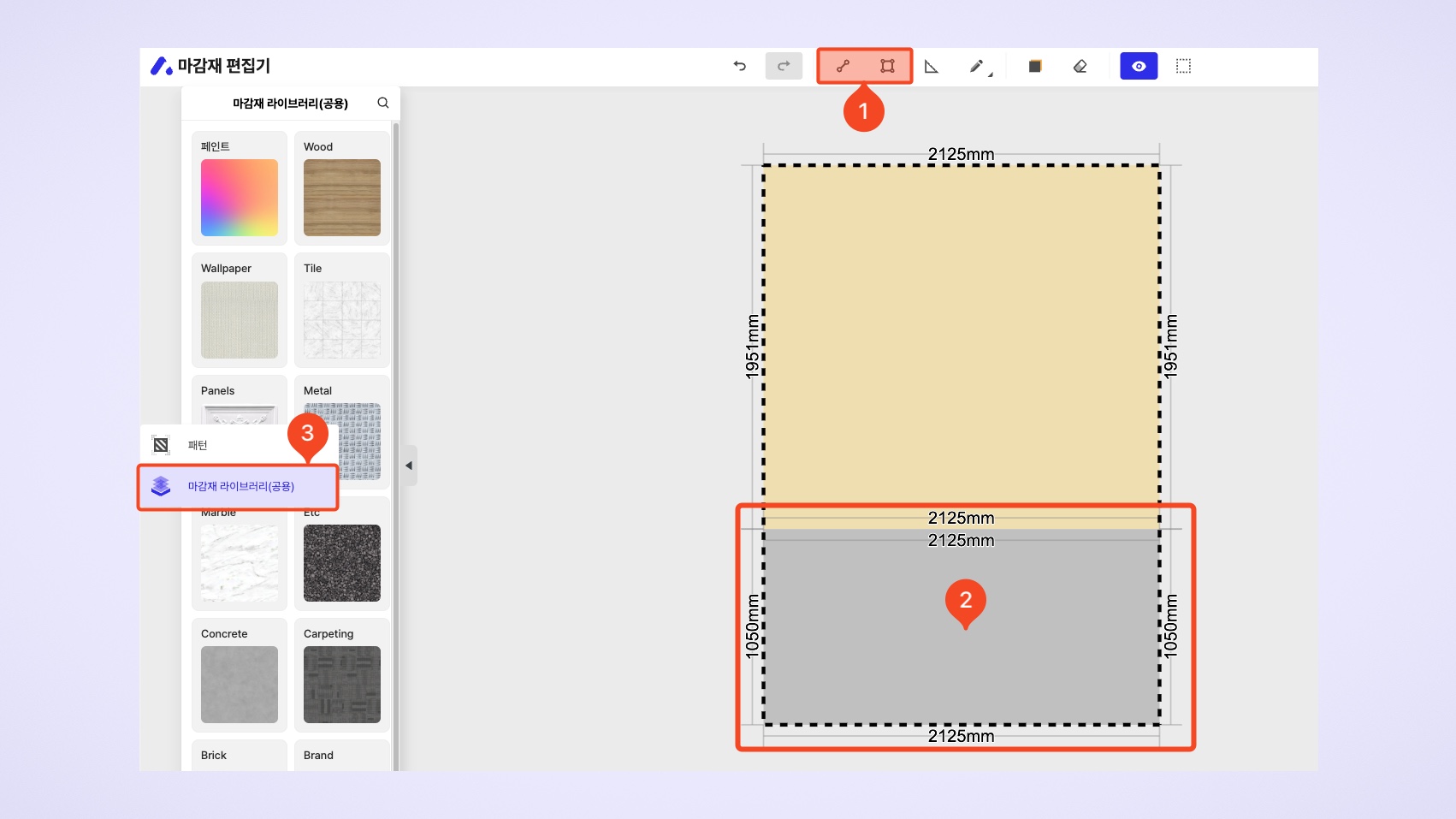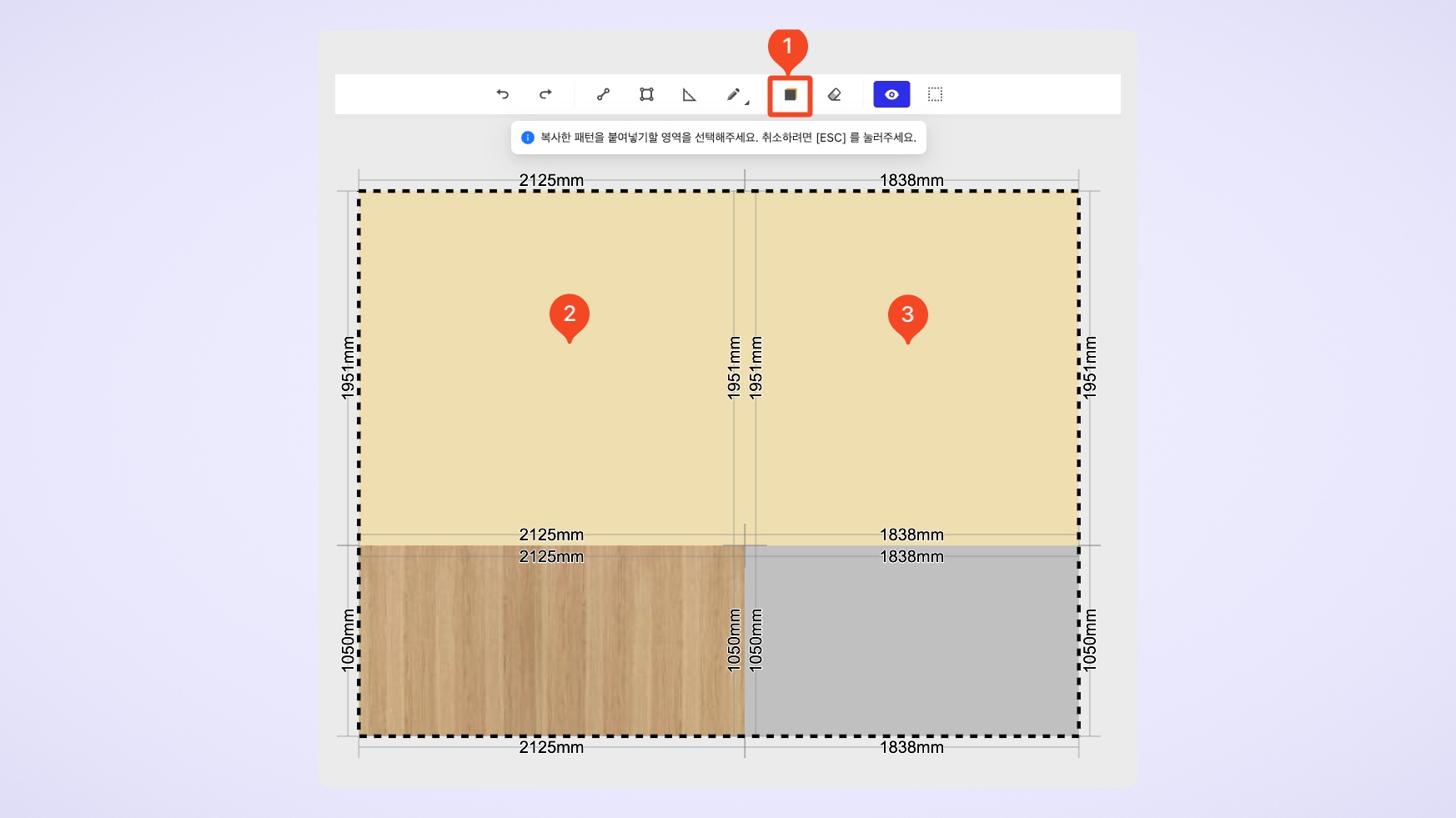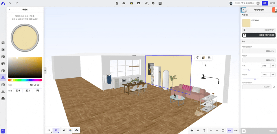 마감재 편집기를 활용한 다른 예시도 궁금하다면? (공간 툴바 기능 알아보기 →)