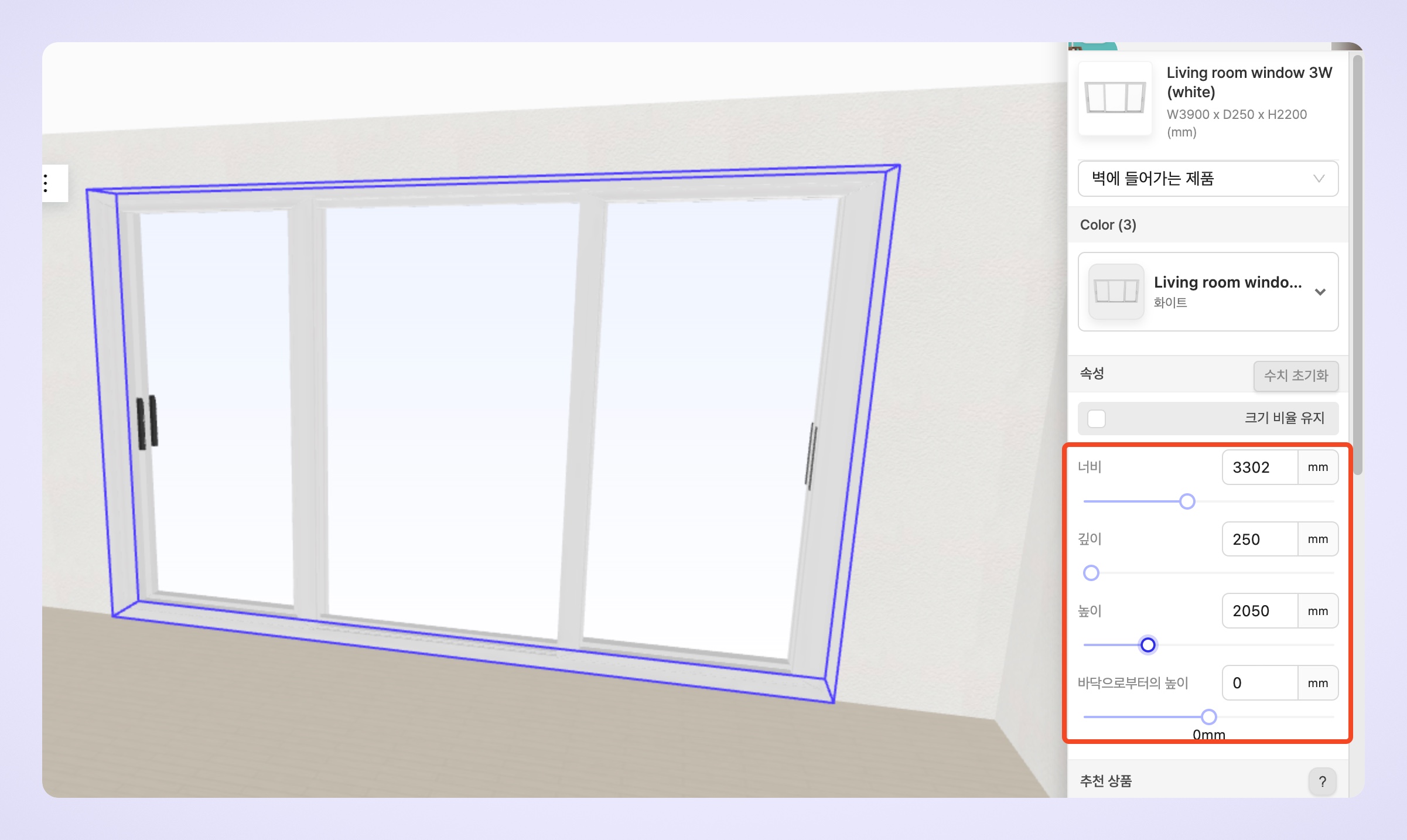 문과 창문 제품은 우측 제품 상세 정보에서 사이즈를 원하는 대로 조절할 수 있습니다. 제품을 선택한 후, 제공되는 크기 조정 옵션을 사용하여 문이나 창문의 크기를 자유롭게 조절하고, 공간에 맞게 최적화된 디자인을 만들어 보세요.