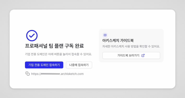 구독 경로 : 아키스케치 홈페이지 → 요금 안내 → [프로페셔널 팀 구독하기] → 결제