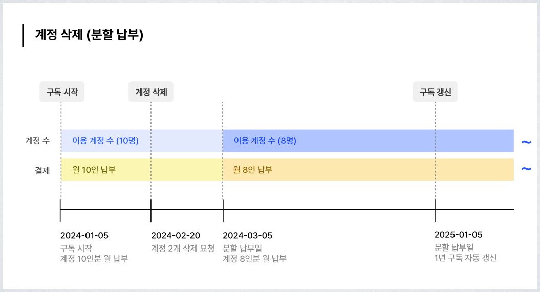일별 구독료 = (분할 결제 금액) ÷ (해당 달 총 일수) x (계정 수)