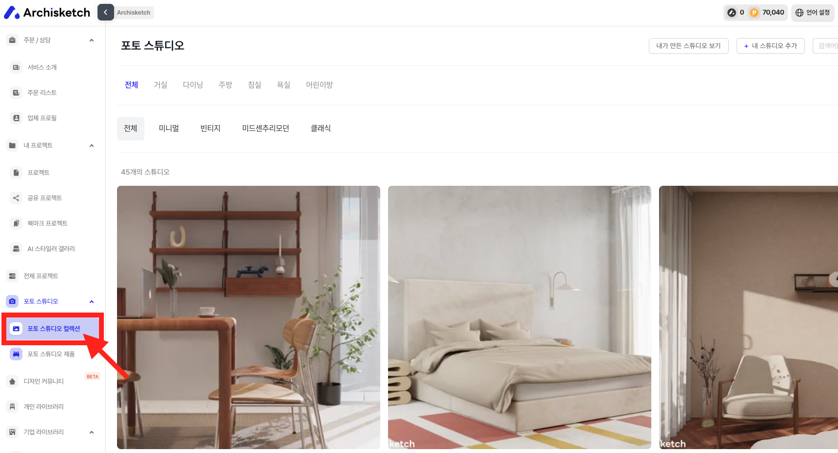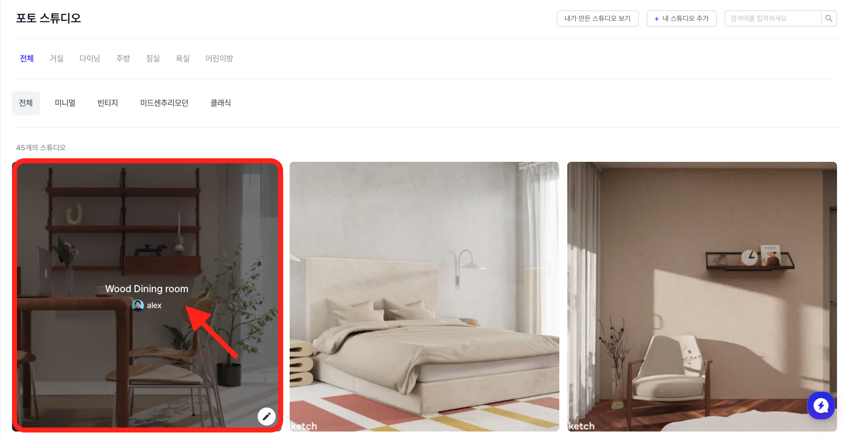 포토 스튜디오 컬렉션에서 원하는 스튜디오를 선택합니다.