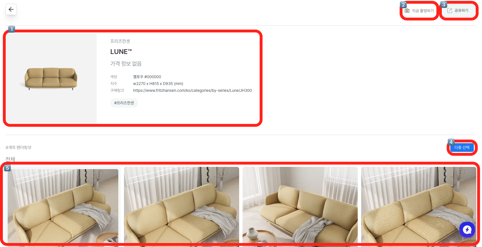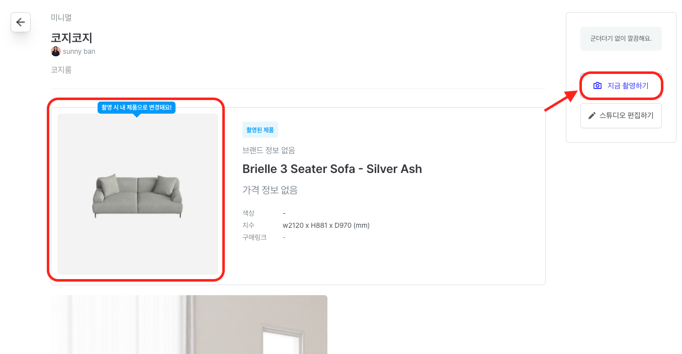 변경할 가구를 확인한 후 [지금 촬영하기] 버튼을 클릭합니다.