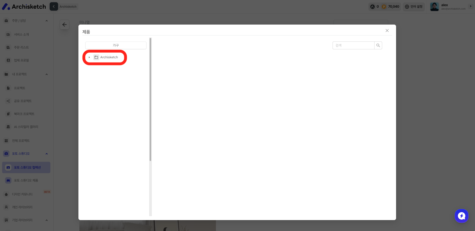 내가 선택한 가구를 사용해 촬영을 하고 싶을 때 (다른 스튜디오 선택 가능)