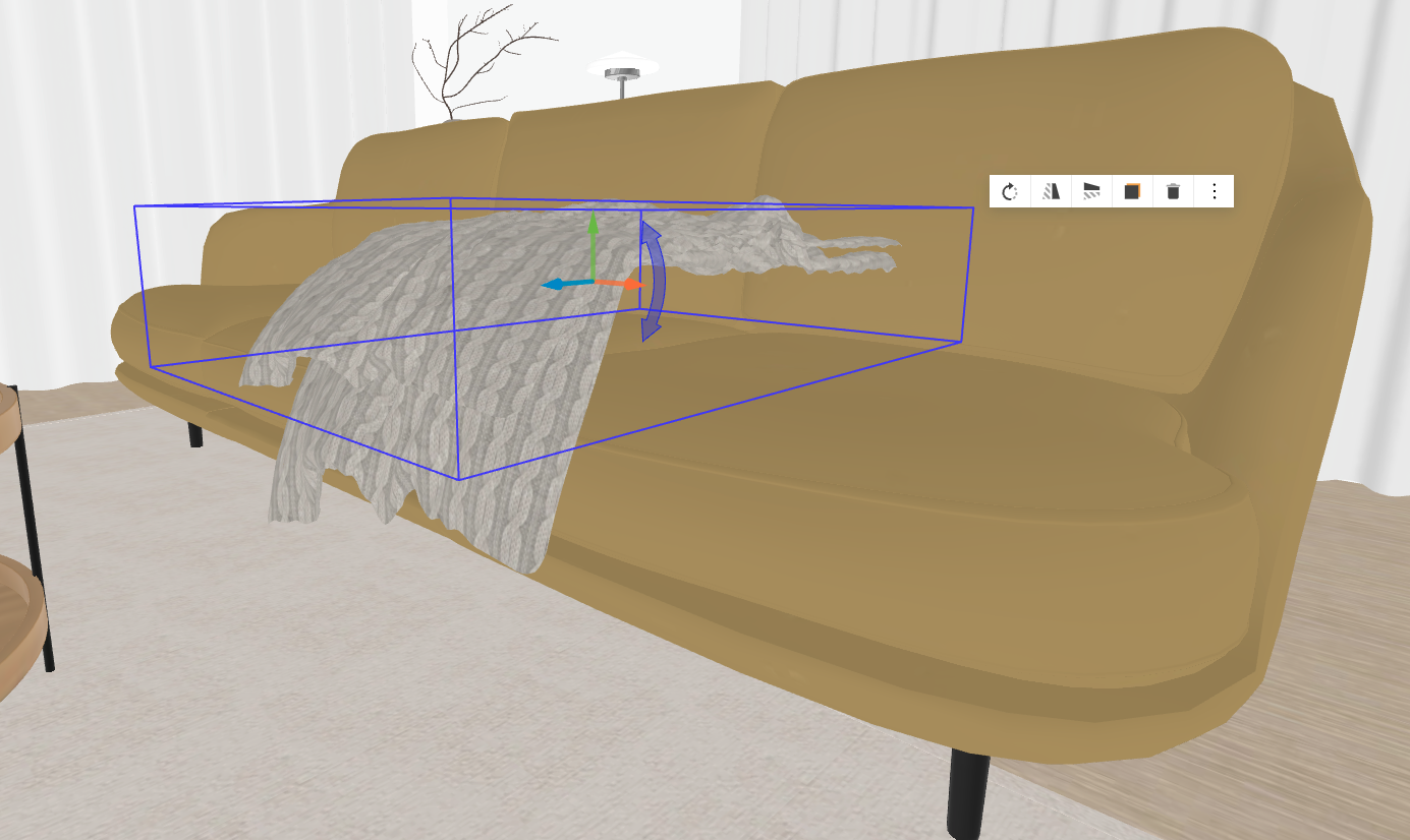 소품이 떠 있지 않도록 방향축을 잡고 소파 위에 맞게 높이를 조정합니다.