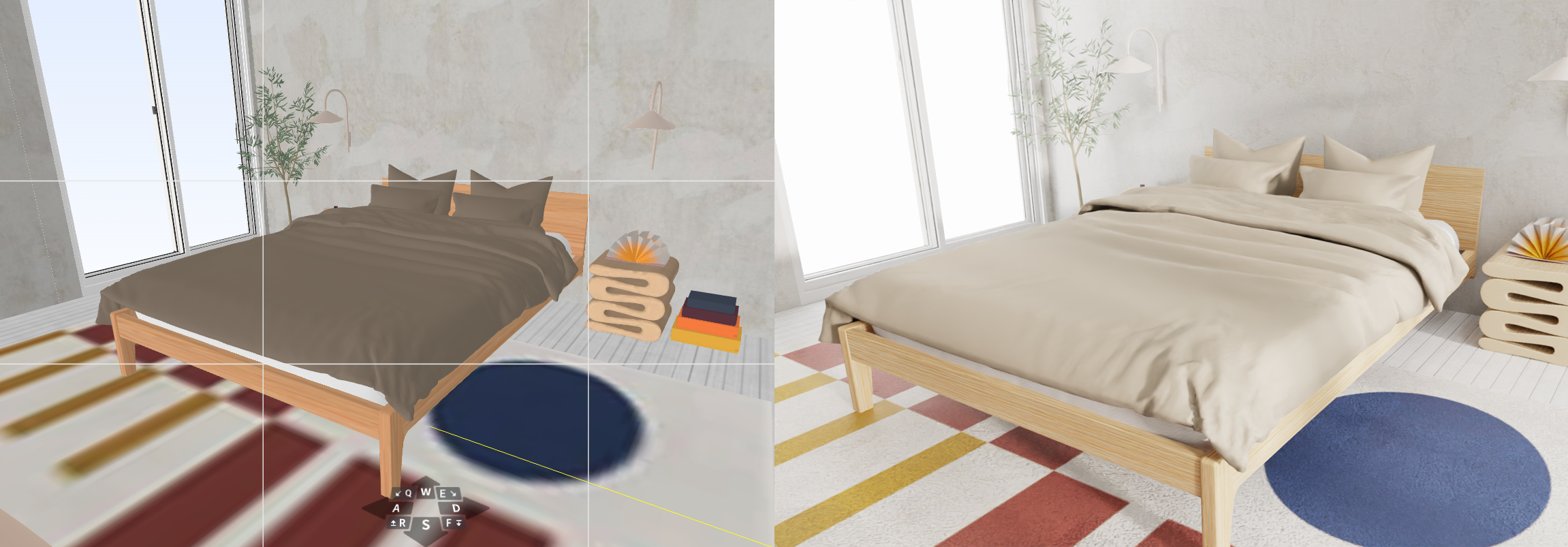 카메라 이동: 키보드 W, A, S, D / Q, R, E, F
