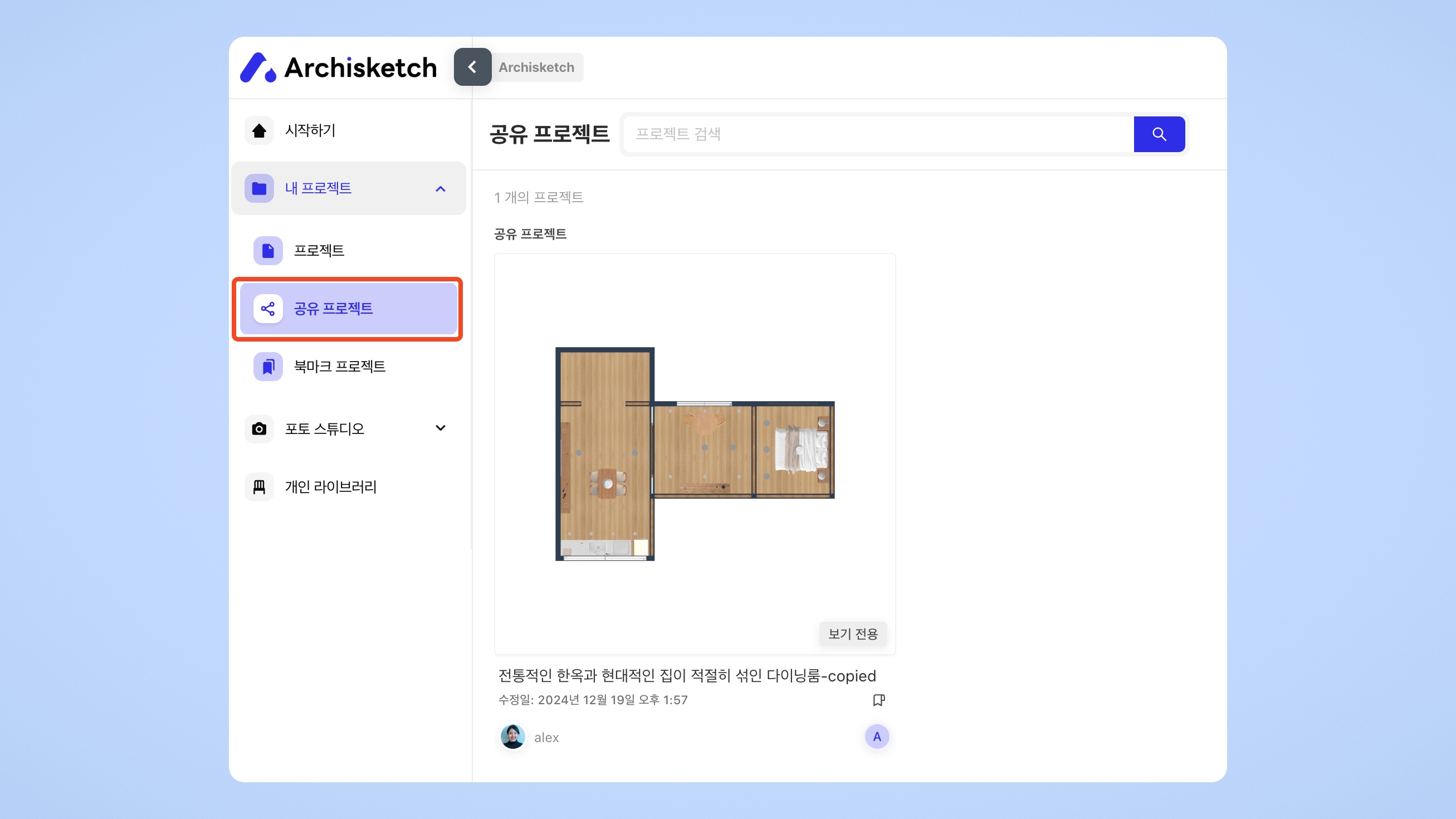 보기 전용 링크: 아키스케치 유저가 아니어도 링크를 통해 프로젝트를 볼 수 있어요.