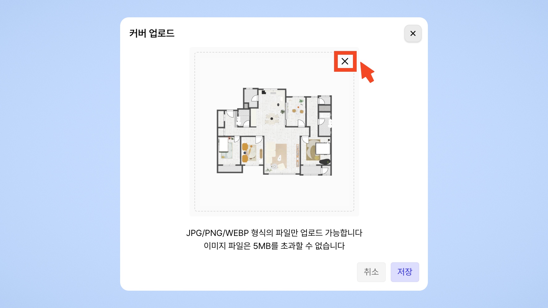 기존 평면도 이미지를 삭제하고 원하는 이미지를 업로드합니다.