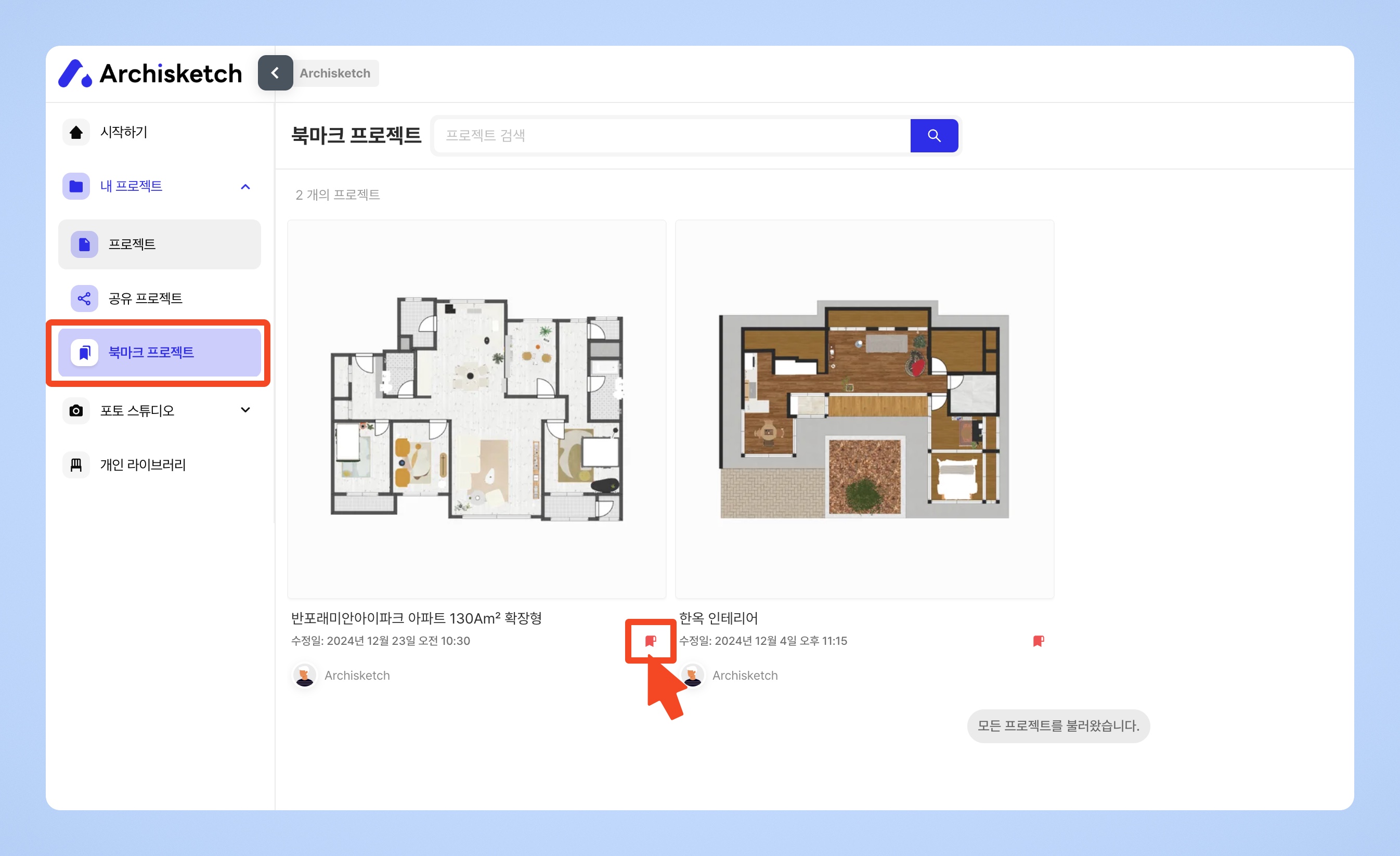 프로젝트 우측 하단에 북마크 아이콘이 표시됩니다.