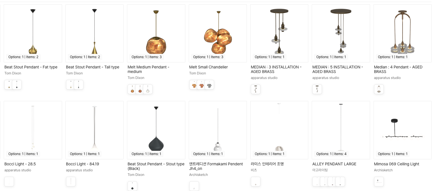카테고리: 주로 외국계 하이엔드 조명 제품 및 가구