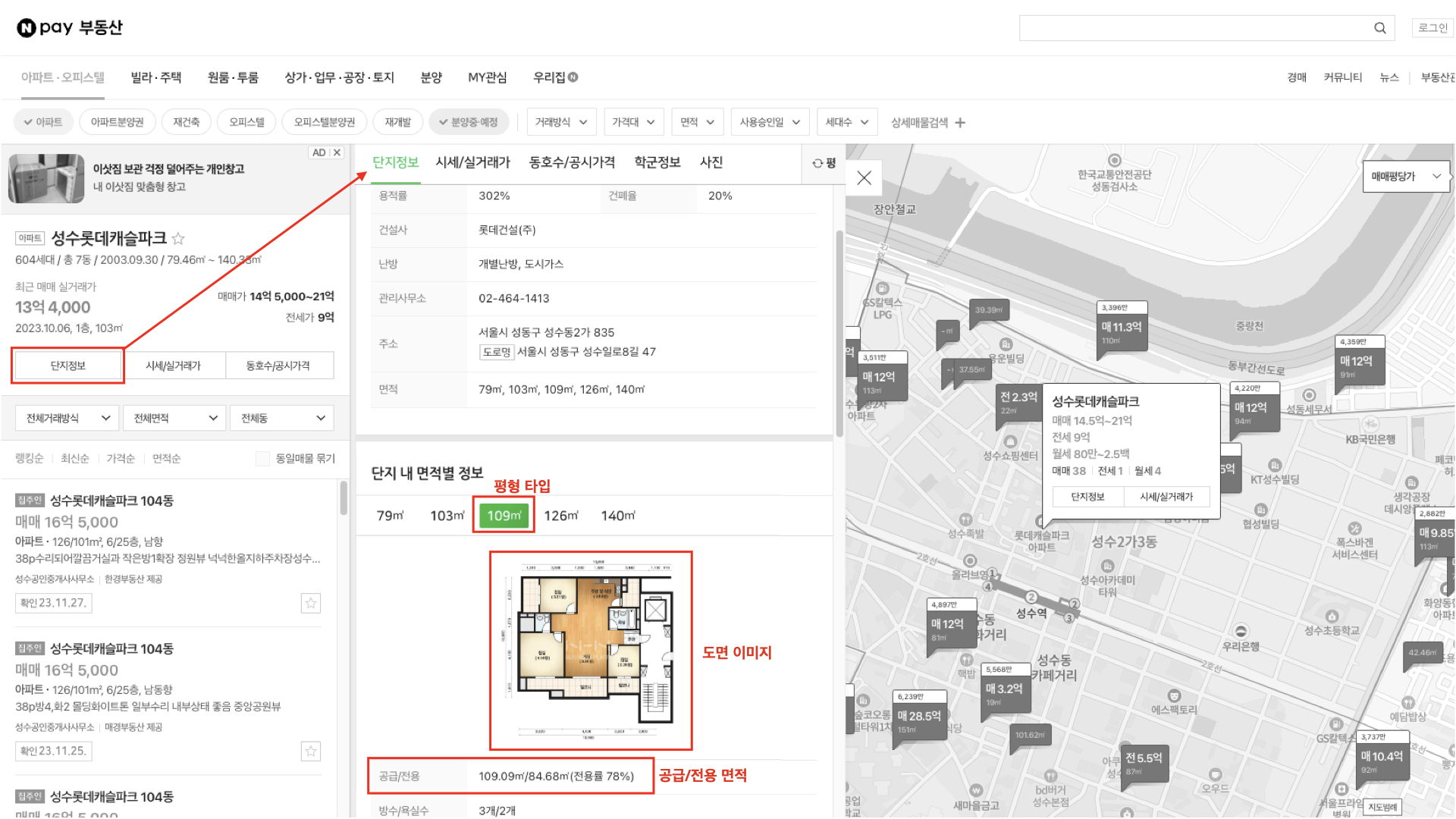 면적 : 공급/전용 면적은 소수점 2자리까지 기입해 주세요.