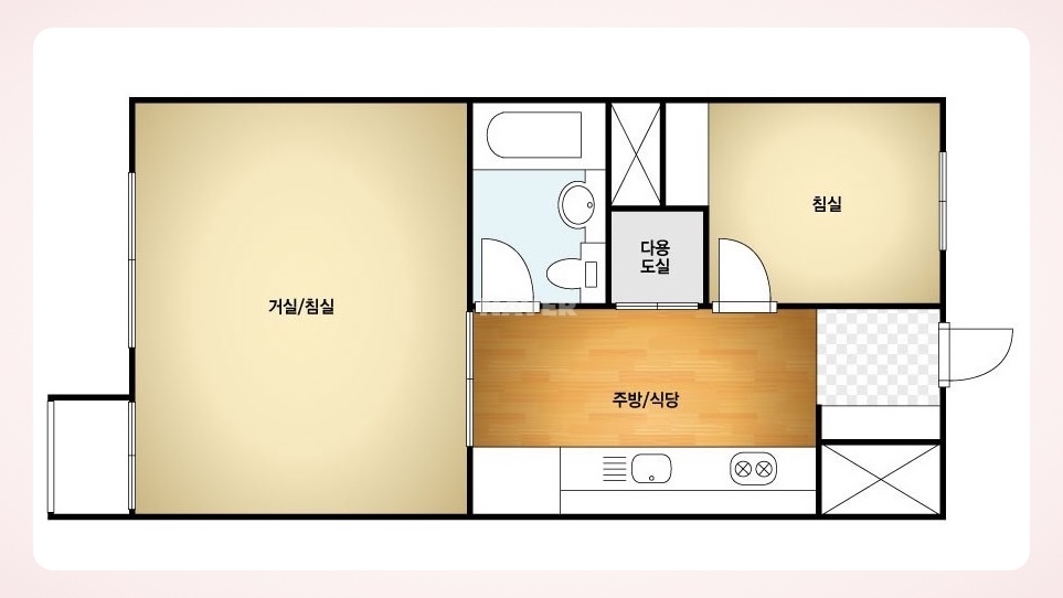 도면 이미지를 기반으로 제작되므로 실제 공간과 차이가 있을 수 있습니다. 또한, 도면 구조 그대로 제작되기 때문에 유상 옵션과 같은 세부 요소는 반영이 어렵습니다.