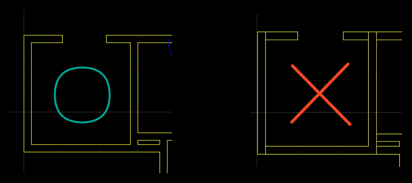 주의) 벽의 선과 선은 반드시 꼭 맞닿아야 합니다. 그렇지 않으면 벽 탐지가 제대로 이루어지지 않습니다.