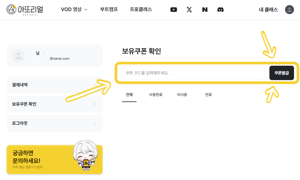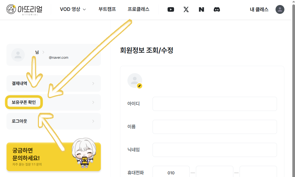 ์ข์ธก ๋ฉ๋ด ์ค [๋ณด์ ์ฟ ํฐ ํ์ธ]์ ํด๋ฆญํด ์ฃผ์ธ์.
